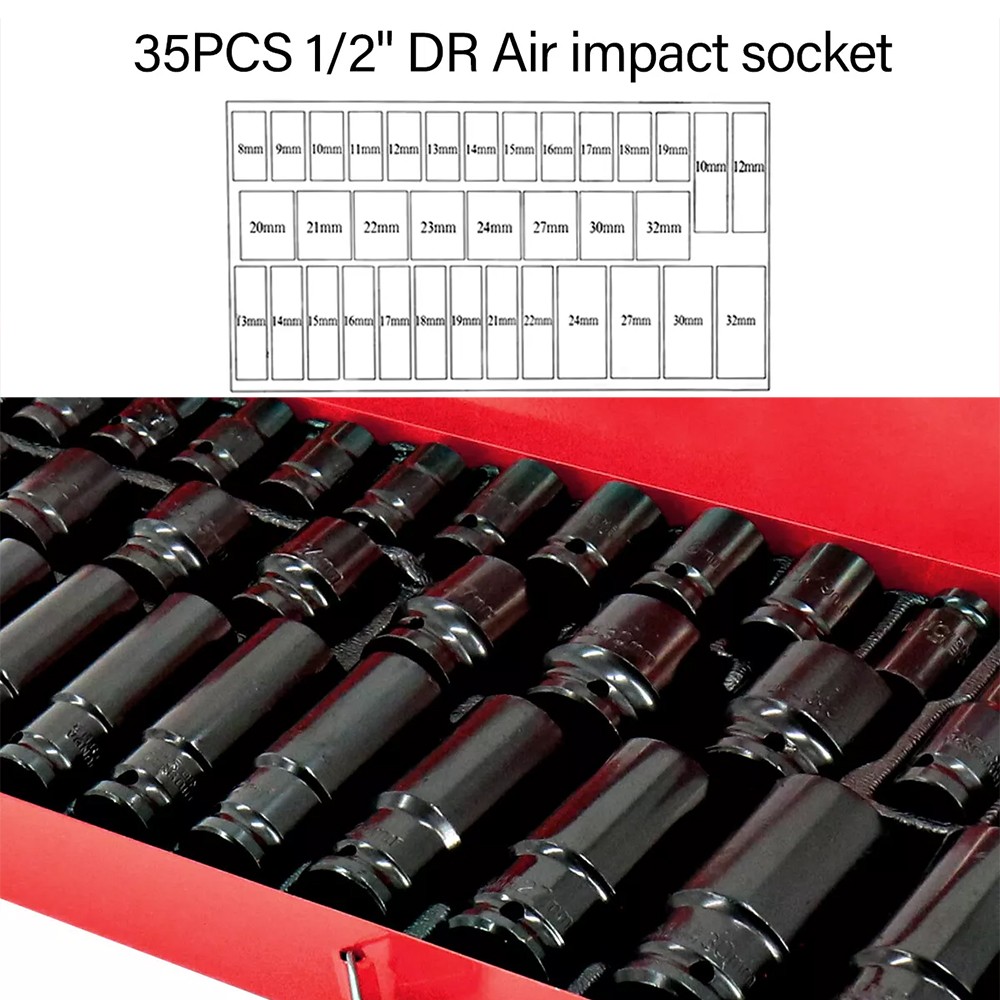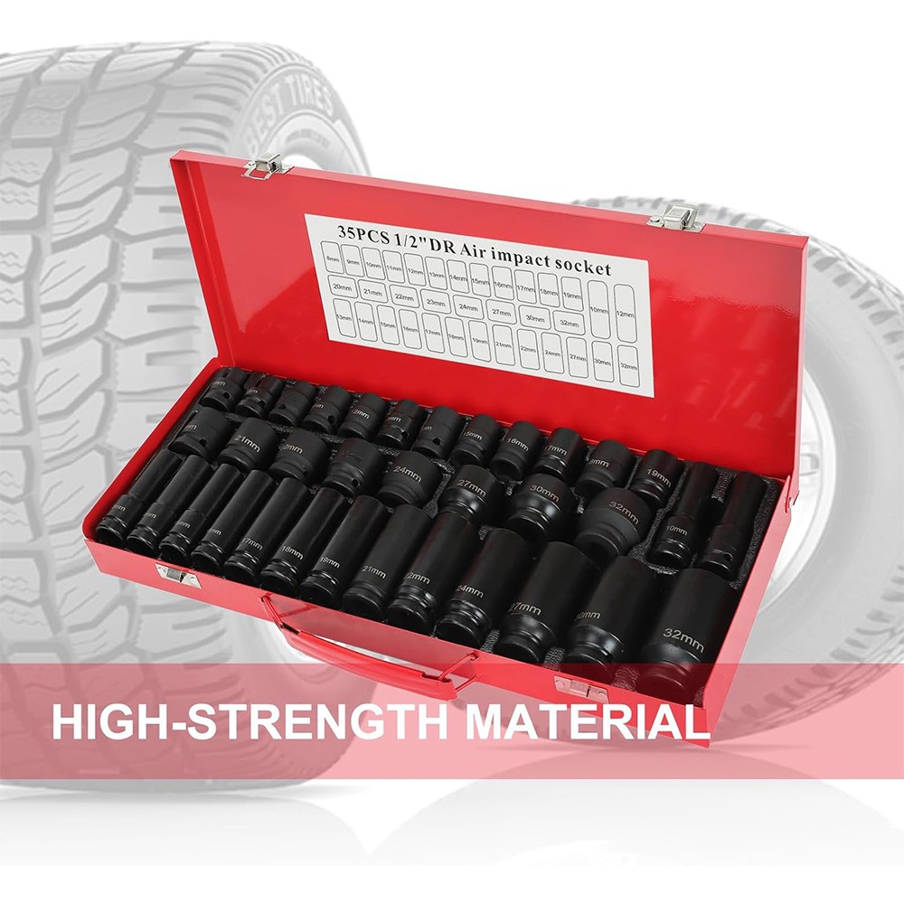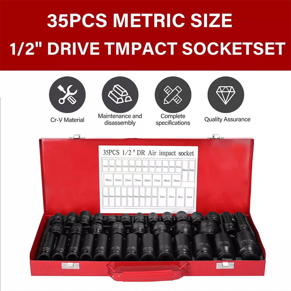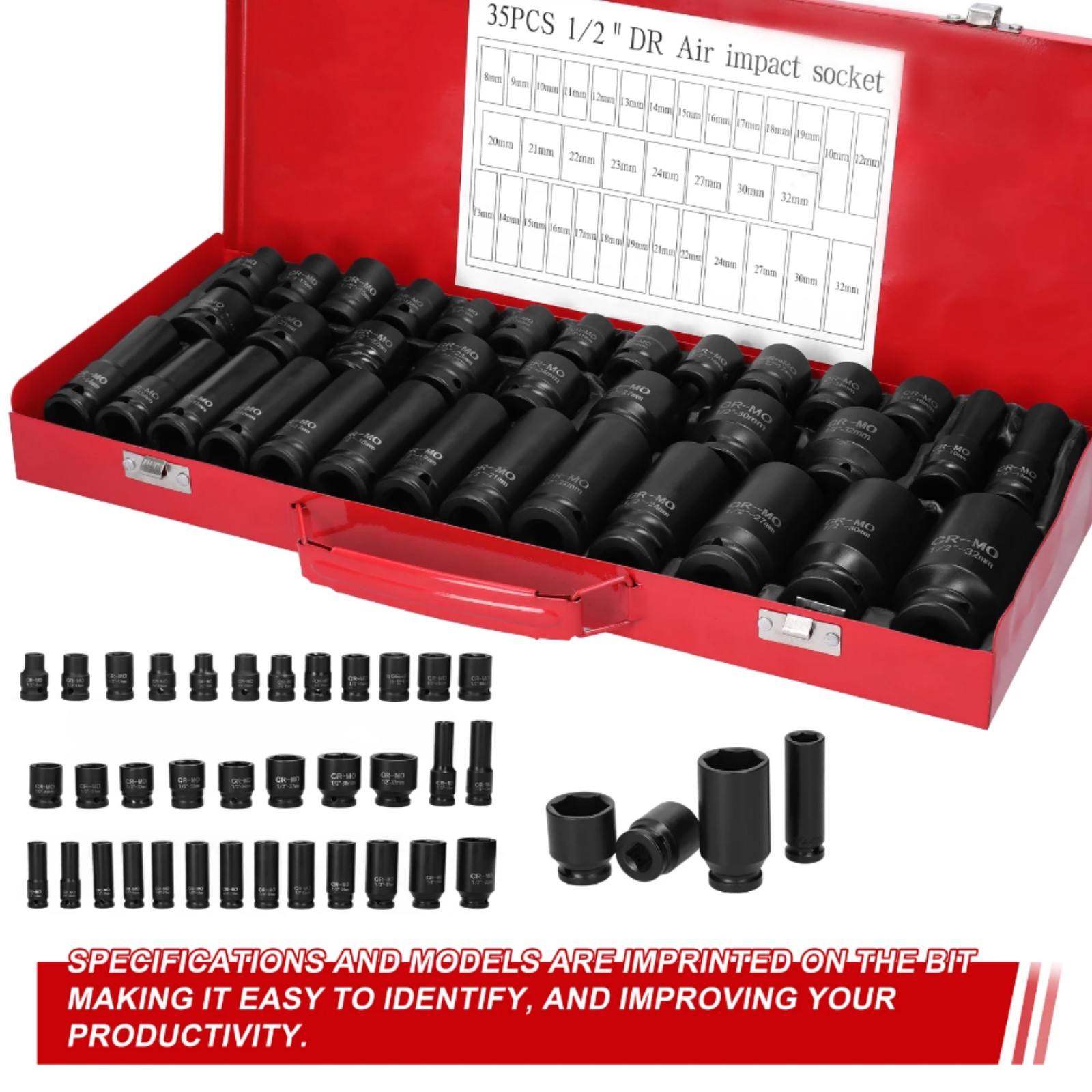 1 x Set of 35 Piece 1/2" Impact Metric Socket
