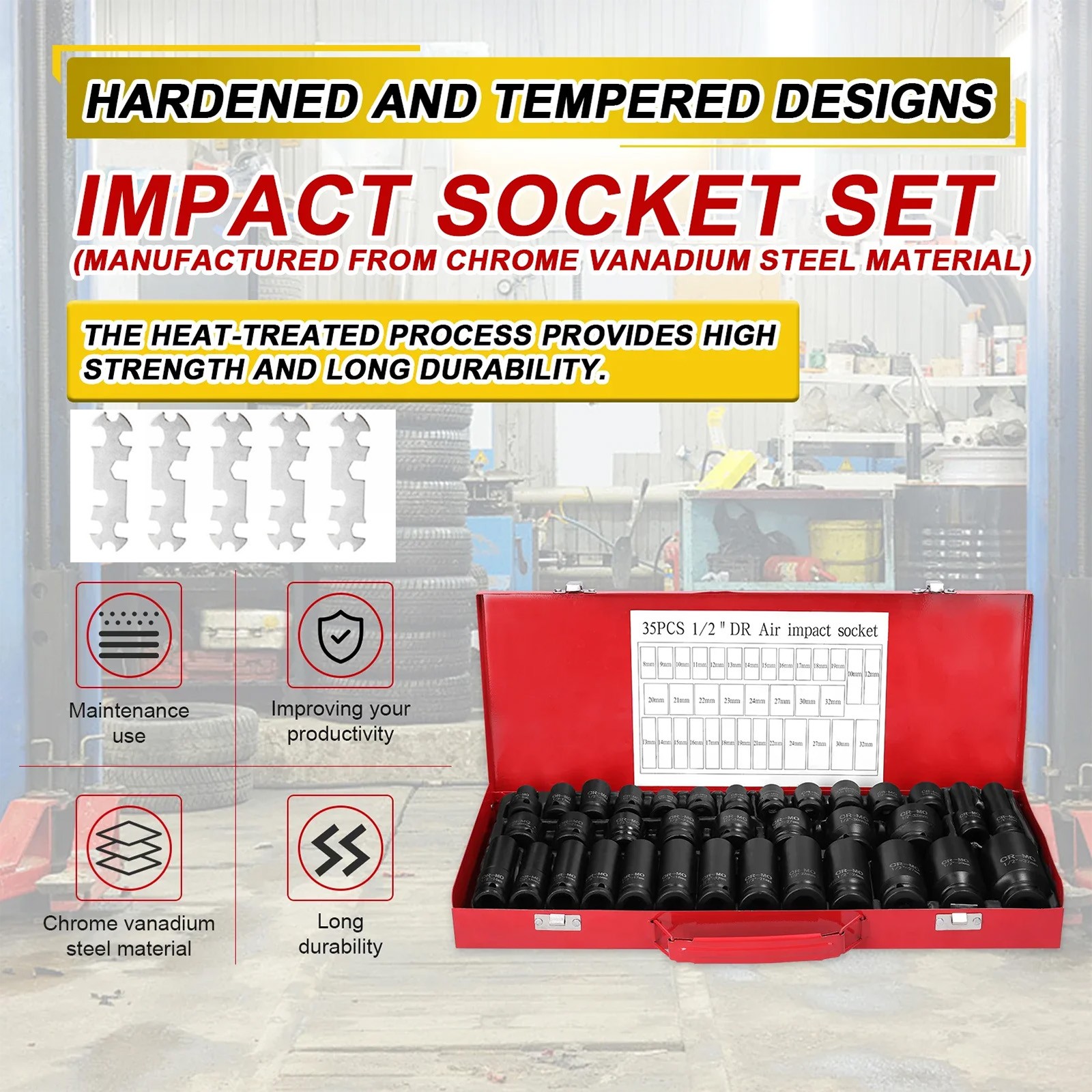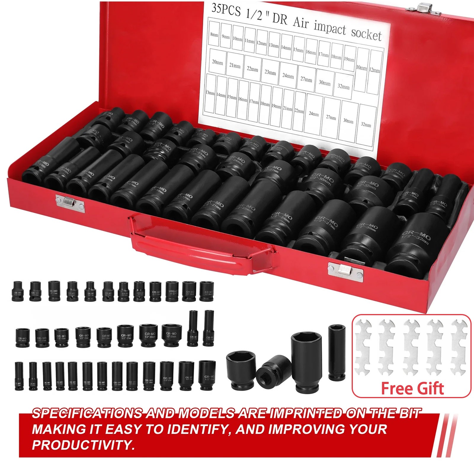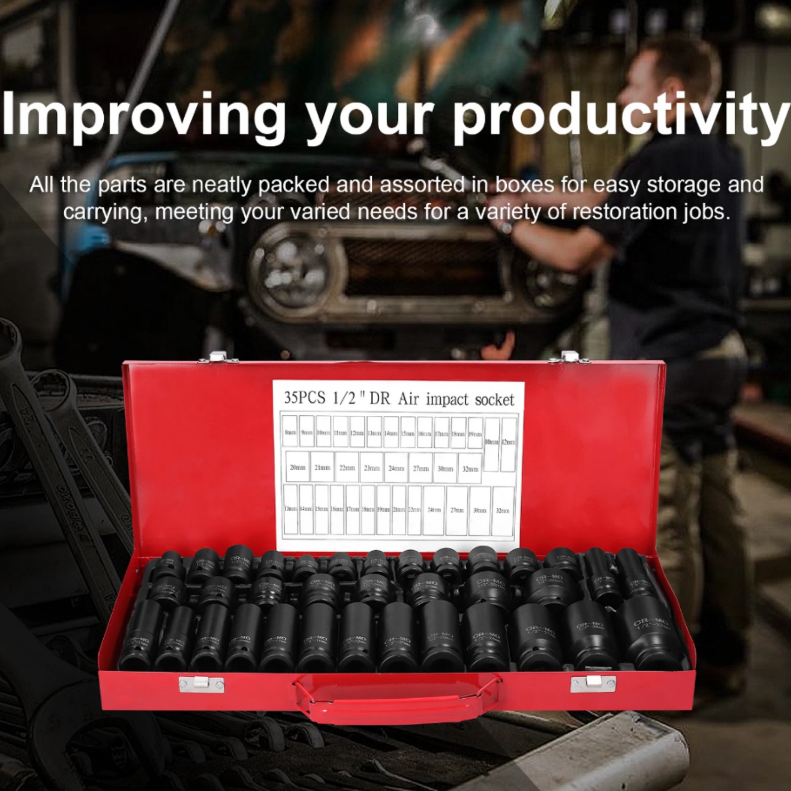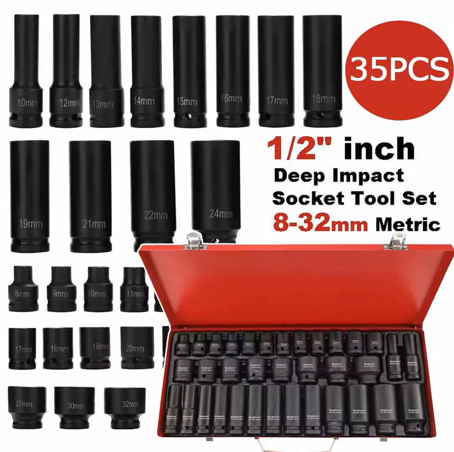 1 x Set of 35 Piece 1/2" Impact Metric Socket