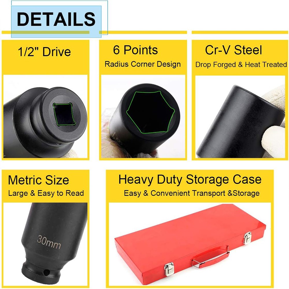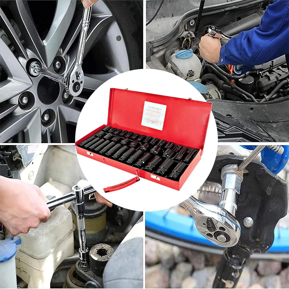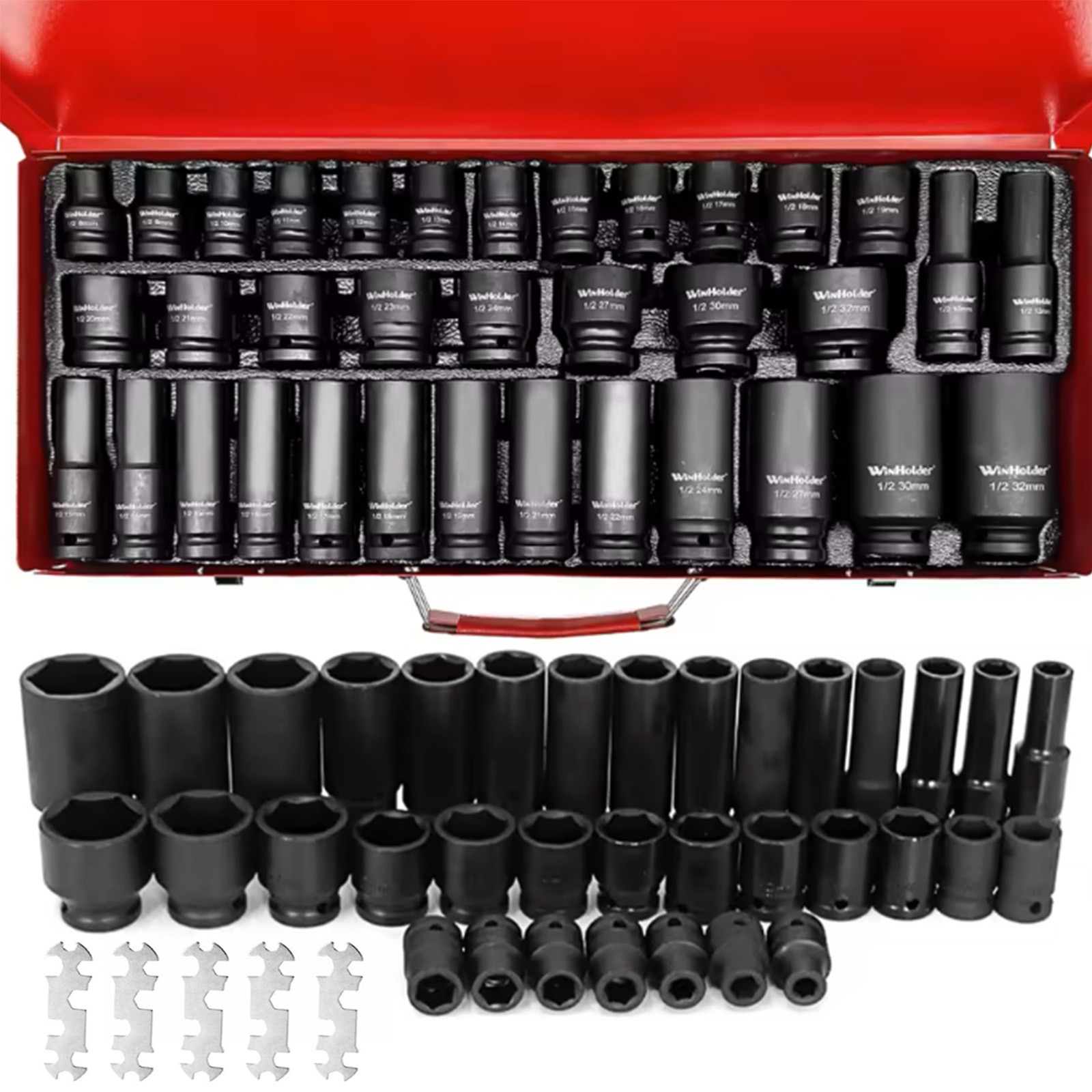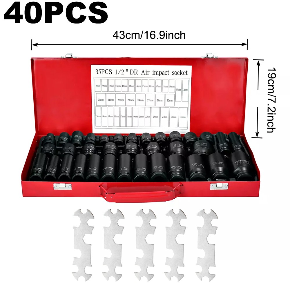 1 x Set of 35 Piece 1/2" Impact Metric Socket